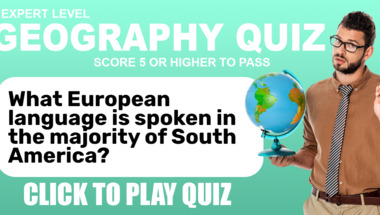 4/10 is the score to beat in this Geography quiz to put yourself over the average quiz taker. But you're probably going to be able to answer questions "What European language is spoken in the majority of South America?" and "The Carolina Hurricanes are the NHL franchise based in which US city?" easy!