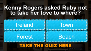 6/10 is the score to beat in this 1960s Song Lyrics quiz to put yourself over the average quiz taker. But you're probably going to be able to answer questions "Kenny Rogers asked Ruby not to take her love to where?" and "What comes before "I want my baby back" in the Los Bravos hit lyrics?" easy!