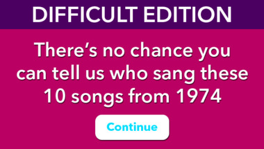 If you can answer "Who sang this song : "You're So Vain" in 1974?" and maybe even "Who sang this song : "Space Oddity" in 1974?" there is a good chance that you're going to beat the average score of 6/10 in this trivia quiz