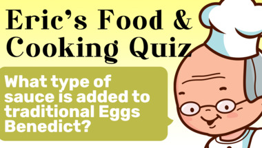Look forward to questions like "What type of sauce is added to traditional Eggs Benedict?" and "What is often added to sangria before serving?"