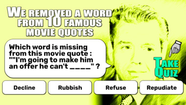 Look forward to questions like "Which word is missing from this movie quote : ""I'm going to make him an offer he can.." and "Which word is missing from this movie quote : ""Toto, I've got a feeling we're not in.."