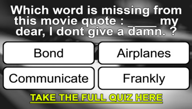 If you can answer "Which word is missing from this movie quote : ""____ no place like home." ?" and maybe even "Which word is missing from this movie quote : ""____ my dear, I don't give a damn." ?" there is a good chance that you're going to beat the average score of 7/10 in this trivia quiz