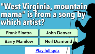 If you can answer ""West Virginia, mountain mama" is from a song by which artist?" and maybe even "David Essex was gonna make you a what in 1974?" there is a good chance that you're going to beat the average score of 6/10 in this trivia quiz