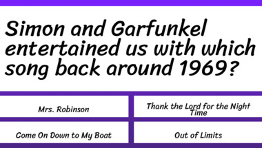 If you can answer "Simon and Garfunkel entertained us with which song back around 1969?" and maybe even "Simon and Garfunkel entertained us with which song back around 1967?" there is a good chance that you're going to beat the average score of 4/10 in this 1960s Songs quiz