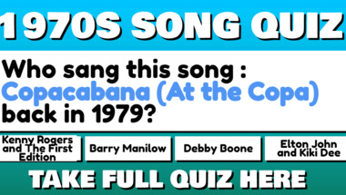 5/10 is what people on average are scoring in this trivia quiz so far. Are you ready to answer questions like "Who sang this song : "Copacabana (At the Copa)" back in the 1970s?" and "Who sang this song : "Mandy" back in the 1970s?"