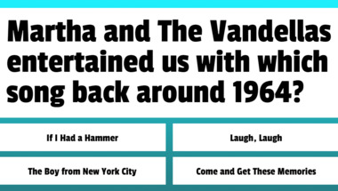 If you can answer "Nancy Sinatra entertained us with which song back around 1967?" and maybe even "Mary Wells entertained us with which song back around 1965?" there is a good chance that you're going to beat the average score of 4/10 in this 1960s Songs quiz