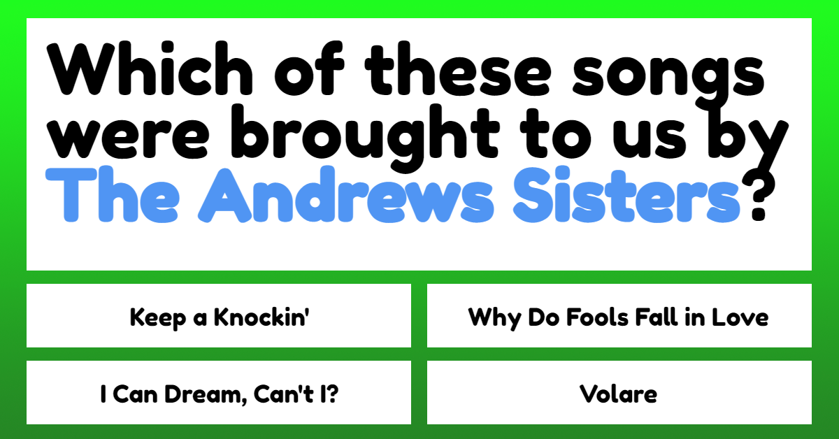 Which of these songs were brought to us by "The Andrews Sisters"?