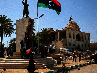 Who was the infamous ruler of Libya, known for his eccentric style and iron grip, who was finally given the boot by revolutionary forces in 2011?