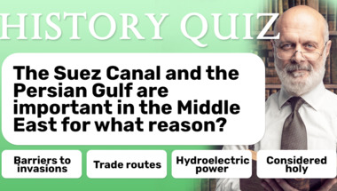 6/10 is what people on average are scoring in this trivia quiz so far. Are you ready to answer questions like "Eva Braun is famous for marrying which historical figure?" and "The Suez Canal and the Persian Gulf are important in the Middle East for what reason?"