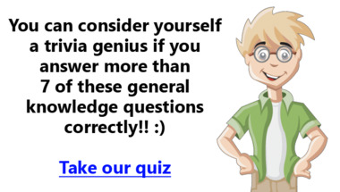 If you can answer "If Jon has 3 pet turtles and Jake has 9 pet turtles, how many pet turtles are there a.." and maybe even "The Italian, "il toro" is which animal?" there is a good chance that you're going to beat the average score of 6/10 in this General Trivia quiz