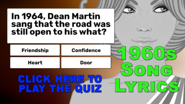 Look forward to questions like ""Near the village the peaceful village" what sleeps tonight, according to The Tokens?" and "In 1964, Dean Martin sang that the road was still open to his what?"