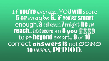 6/10 is the score to beat in this trivia quiz to put yourself over the average quiz taker. But you're probably going to be able to answer questions "Milan and Rome are cities in which European country?" and "What occurs when the earth is between the sun and moon?" easy!